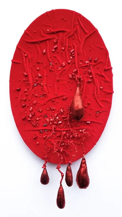 Praca Iwony Demko „Krew. Szłam sobie i nagle mnie zalało” odnosi się do stabuizowanej krwi miesiączkowej, którą odnieść można przecież do płodności i potencji rodzenia. Jest hołdem złożonym kobiecej krwi. Jest też jedną z wielu prac, które odchodzą od tradycyjnych technik artystycznych, na rzecz kobiecego rękodzieła. Inną tego rodzaju pracą jest wykonany z biżuterii „Bezoar” Agaty Zbylut.