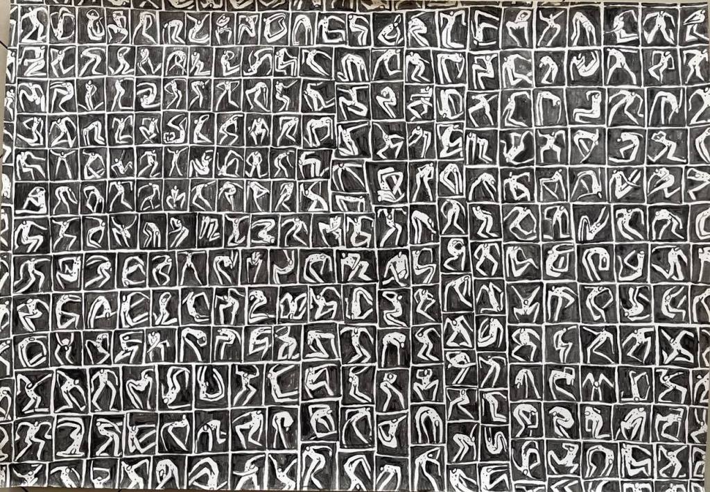 O codziennym krzątactwie, niemożności uwolnienia się od rutyny i codziennych obowiązków mówi też praca Elżbiety Jabłońskiej „300 postaci”. Jest ona swoistym “rarytasem” na Aukcji, gdyż pochodzi z najwcześniejszego okresu twórczości artystki.
