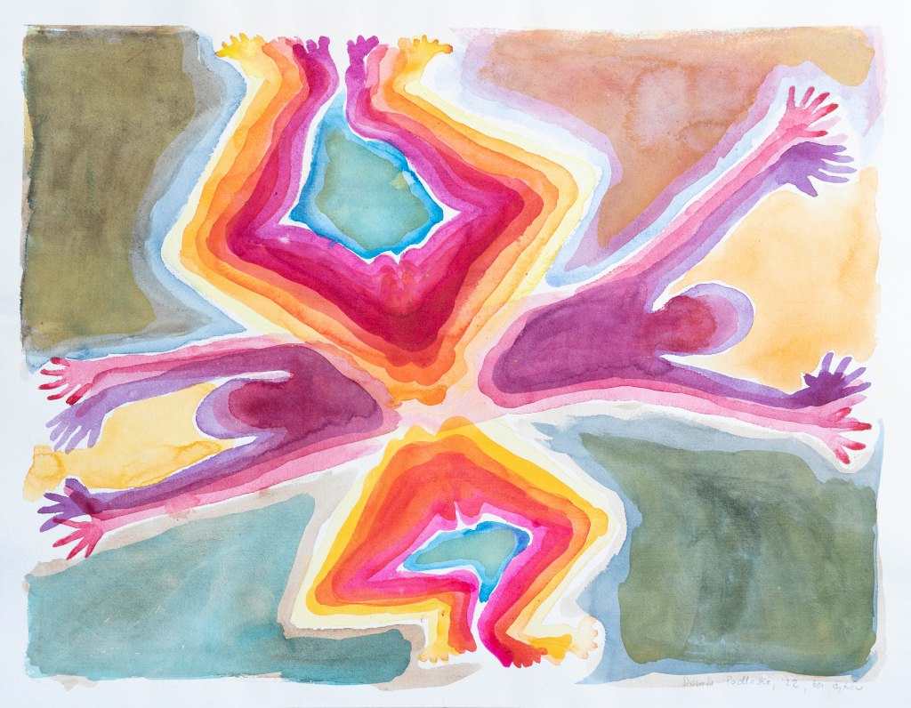 Przy współudziale innych osób – uchodźczyń z Ukrainy powstała wspomniana w poprzednim wpisie praca Aleki Polis „Oksytocyna nr 66 dla Ukrainy”. W tym przypadku ważny był wspólny akt tworzenia, który znalazł swoje odzwierciedlenie na podobraziu, gdzie podpisały się wszystkie tworzące pracę kobiety, zaznaczając również miejsca swego pochodzenia. Ważna była też intencja przywrócenia pokoju w Ukrainie, z która malowane było to mandaliczne płótno.