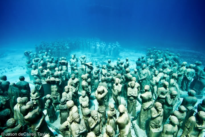 W 1988 roku Taylor ukończył Instytut Sztuki w Londynie, później kształcił się jeszcze w rzeźbie w tradycyjnym kamieniu. Zachwycony podwodnym światem, zauważa zarazem jego degradację, do której przyczynia się zresztą między innymi turystyczne nurkowanie. Chodzi o nurków, którzy podziwiając rafy koralowe, dotykają je i tym samym niszczą. I dlatego Jason de Caires Taylor postanowił tworzyć podwodną sztukę, aby odciągnąć turystów od raf koralowych. Jego rzeźby przeistaczają się w sztuczną rafę, porastają glonami, stają się siedliskiem dla żywych organizmów i w ten sposób wtapiają się w podwodny świat.