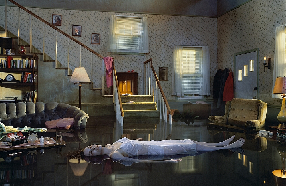 Takie niepokojące elementy, niemożliwe, wzięte z innej rzeczywistości, pojawiają się też u Crewdsona, np. hodowane we wnętrzu kwiaty, woda zalewająca salon łazienkę w kolejnych fotografiach odnoszących się do postaci Ofelii i Narcyza w serii Beneath the Roses (2003 – 2008).
