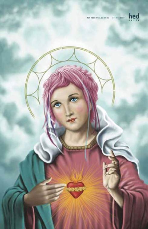 Jednak mniejsza o oburzenie, to, co mnie fascynuje w przypadku tej reklamy, to połączenie tzw. świętego obrazka z estetyką mangi. Trzeba być zupełnie niewrażliwym, by się tej słodkości oprzeć. I to niesamowite gorejące serce w zestawieniu z modnie przyciętymi włosami (i to w kolorze różowym!).