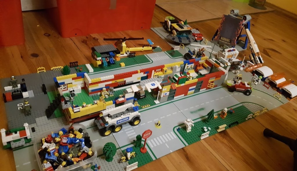 Odnosząc się do budowanego przez nas na początku epidemii sztpitala zakaźnego z kloców Lego, wskazuję miedzy innymi na wspomniane już, przemieszanie się prawdy i fikcji: